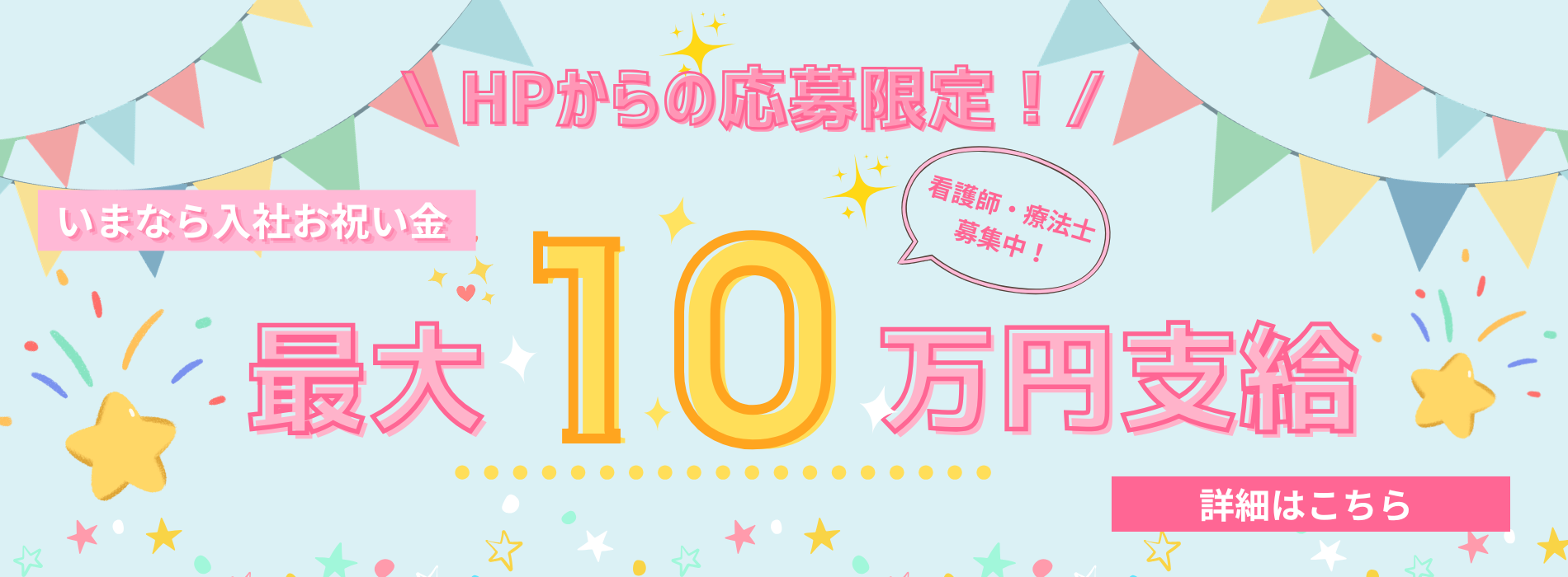一緒に働く看護師・療法士さんを募集中です。ワークライフバランスを大切にしながら、地域の皆様を支える仲間をお待ちしています。